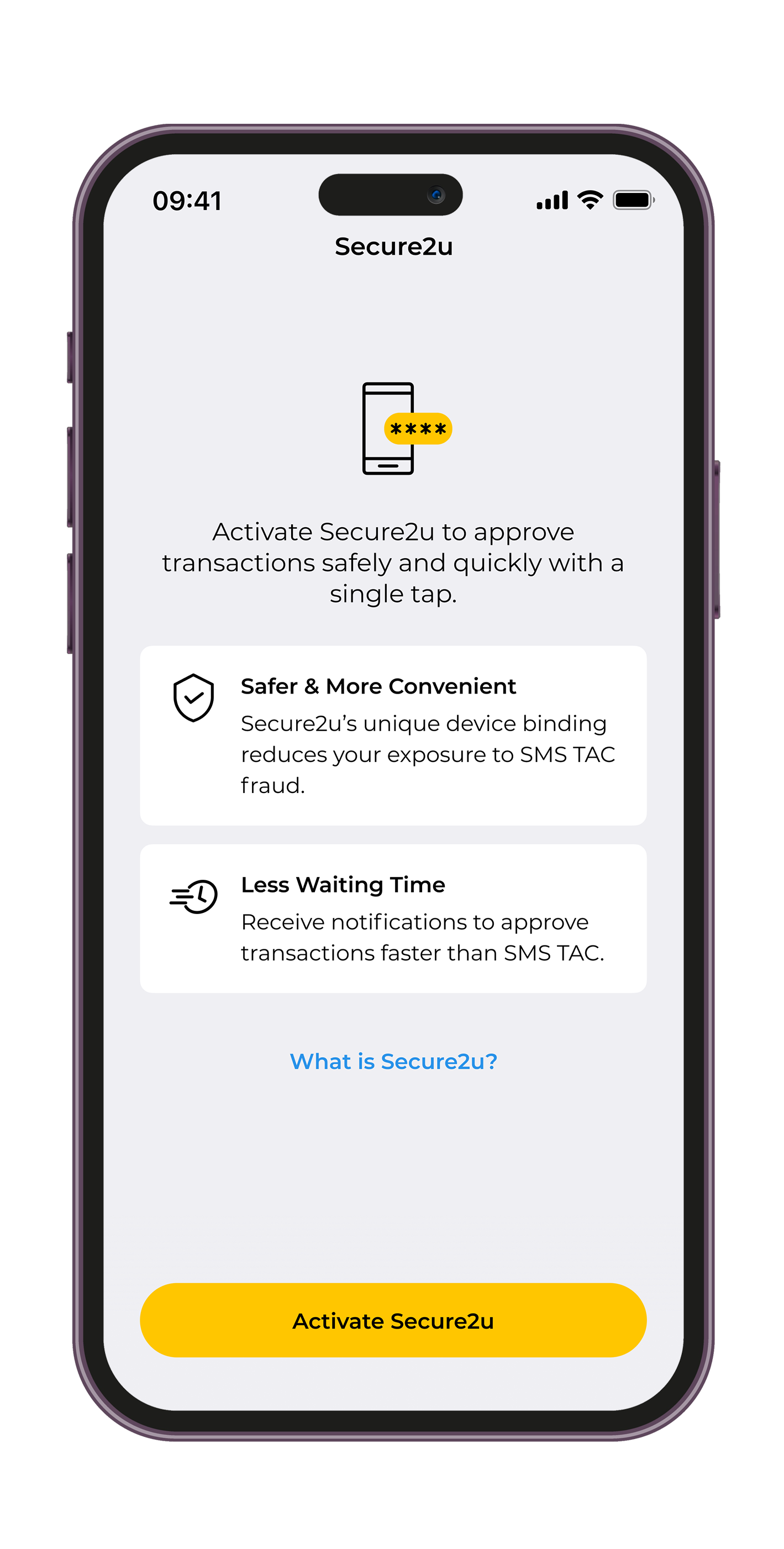Activate Secure2u (S2U) by confirming to link your device to your M2U access via OTP then tap "Done"