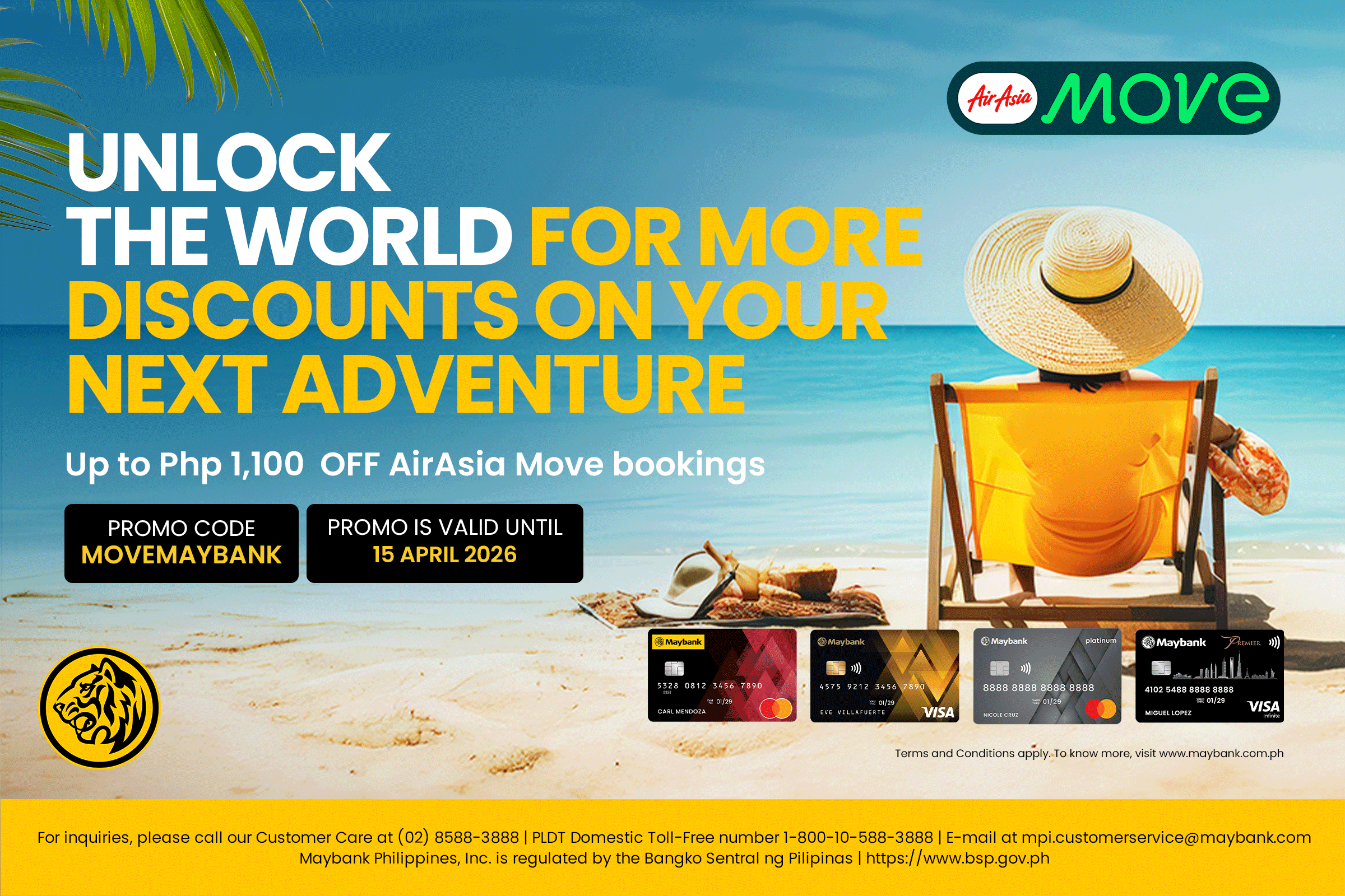 Get up to PhP 1,100 OFF on AirAsia MOVE bookings using your Maybank Credit Card