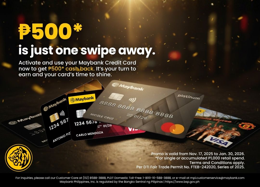 Earn P500 cash back with your Maybank Credit Card Activate your Maybank Credit Card and receive P50...