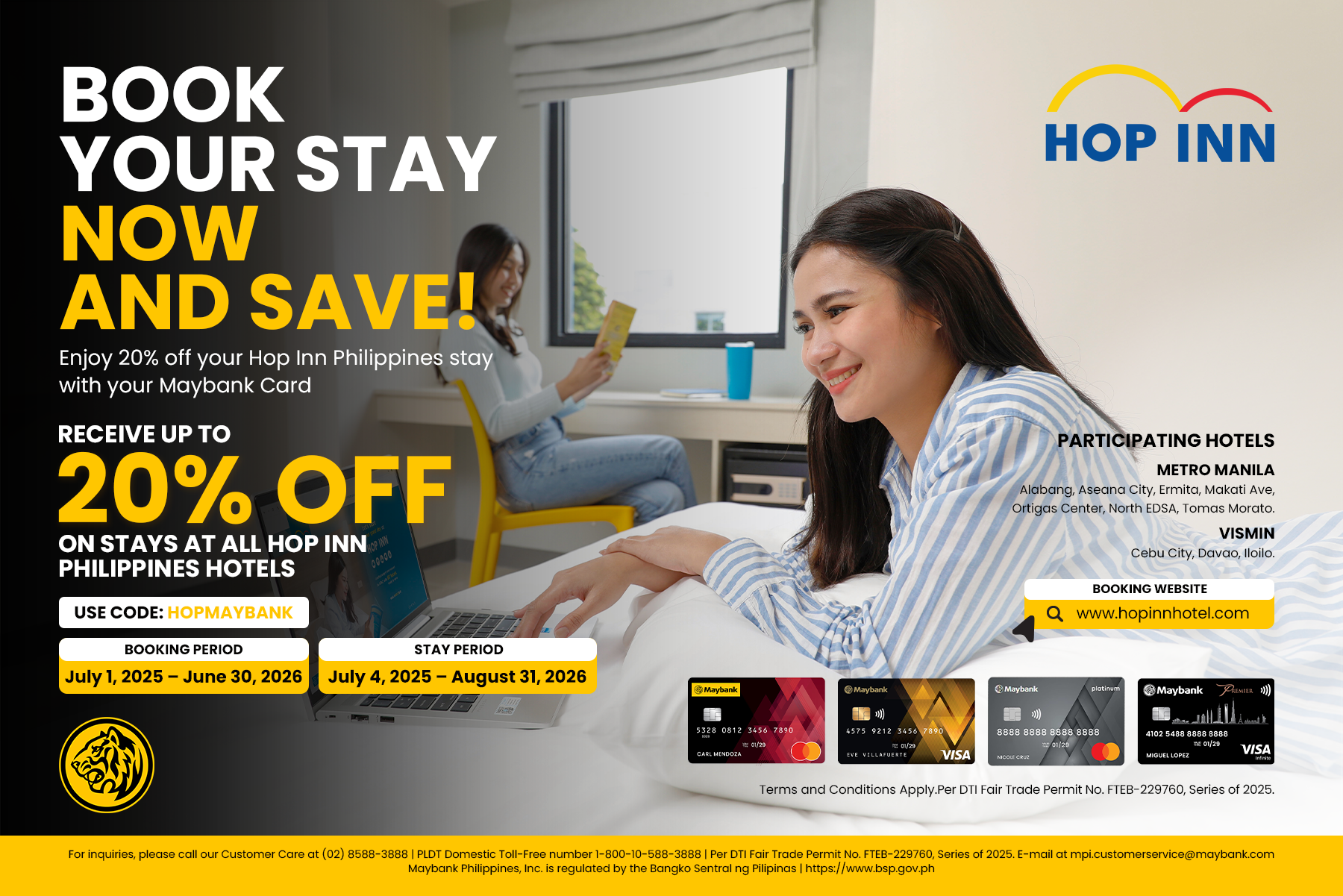 Unlock 20% OFF your Hop Inn Philippines stays with your Maybank Card! Booking Period: July 01, 2025...