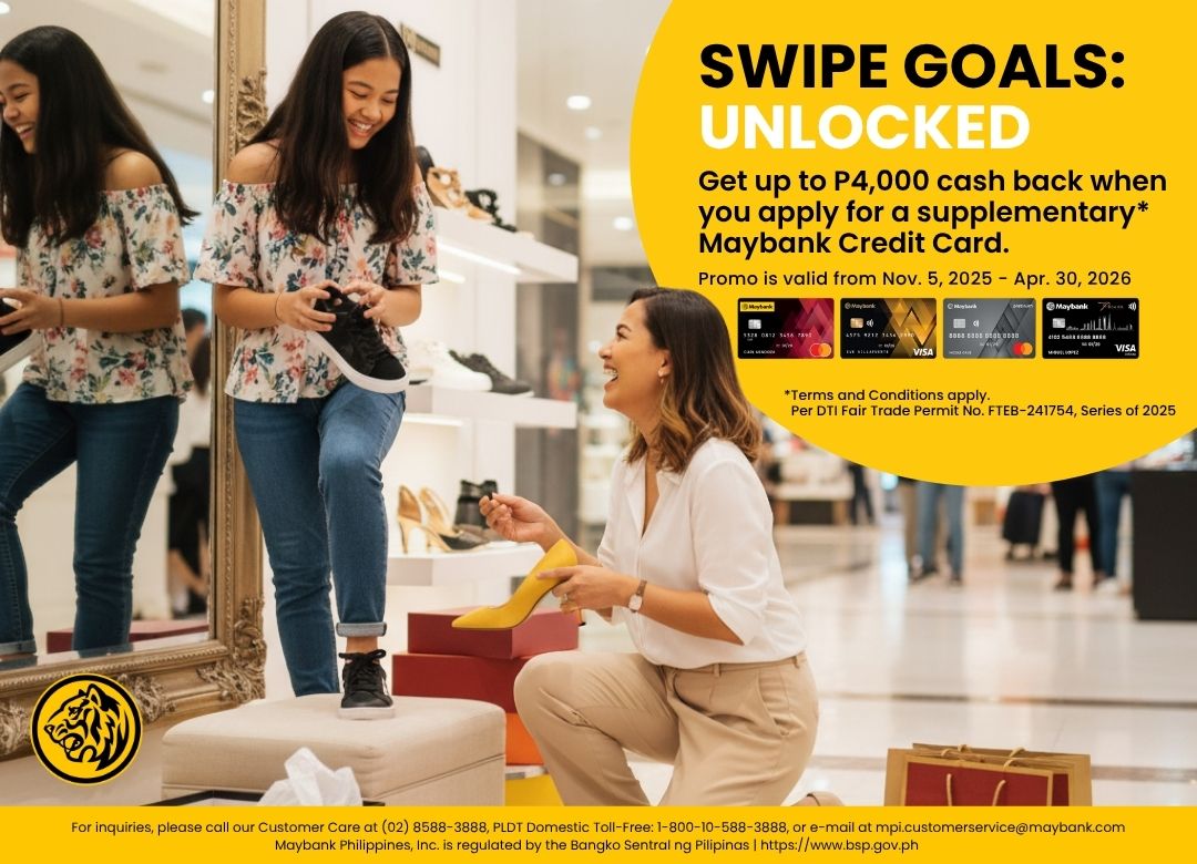 Get up to P4,000 cash back when you apply for a Supplementary Maybank Credit Card